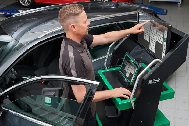 Die Automatisierung von Fahrzeugen bringt für Werkstätten komplexe Herausforderungen mit sich. Denn Fahrerassistenzsysteme erfordern eine präzise Kalibrierung – und das bei steigenden regulatorischen Anforderungen. Hier bietet das CSC-Tool PRO von Hella Gutmann eine effiziente Lösung. Zwei integrierte 3D-Kameras ermöglichen eine vollautomatisierte und hochpräzise digitale Ausrichtung von Targets und Reflektoren. Der zentrale Panel-PC vernetzt sich über Cloud-Datenbanken, um stets aktuelle Kalibriervorgaben und Original-Targets bereitzustellen. Dadurch sind alle Fahrzeugdaten immer auf dem neuesten Stand und können nahtlos ausgetauscht und integriert werden. Der drehbare, entspiegelte 86-Zoll-Ultra-HD-Monitor eignet sich zudem auch für XXL-Targets von Herstellern wie Honda und Iveco. Ergänzend minimiert ein optionaler Chassis PreCheck Fehlkalibrierungen, indem die Achsgeometrie vorab automatisch geprüft wird. Für Frontradar-Systeme bietet das CSC-Tool PRO zwei flexible Lösungen: einen Adapter für das Radar-Kit I EVO mit Winkelverstellplatte – optimal für kleinere Werkstätten geeignet – und das innovative ‚Radar-Tool‘, das durch eine freistehende, flexibel verstellbare Vorrichtung die Kalibrierung von modernen Front-, Heck- und Seitenradarsystemen, wie beispielsweise von BMW-Modellen, ermöglicht.