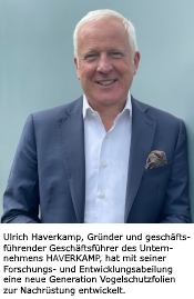 Der Hersteller weiß, wovon er spricht. HAVERKAMP engagiert sich seit langer Zeit für eine nachhaltige und vogelfreundliche Bauweise von Gebäuden mit Glas, stellte als einer der ersten am Markt eine höchst effektive Lösung bereit und steht im Austausch mit Naturschutzorganisationen. Als erstmals deutlich wurde, dass – groben Schätzungen zufolge - über 5 Prozent aller Vögel in Deutschland an Glasfronten verenden, weil sie diese nicht als Hindernis wahrnehmen, begann HAVERKAMP mit der Produktentwicklung. Da gleichzeitig Glasfassaden und große Glasfronten an Gebäuden aus der Architektur nicht mehr wegzudenken sind, war umso mehr eine Lösung gefragt, die dieses Dilemma auflösen kann. „Seit mehr als 45 Jahren entwickeln wir nun unter anderem nachrüstbare Funktionsfolien für Glas. Und wir waren sicher, mit unserer Erfahrung auch für dieses ökologisch wichtige Thema eine effektive Lösung zu finden“, erzählt Ulrich Haverkamp, Gründer und Geschäftsführer des gleichnamigen Unternehmens.